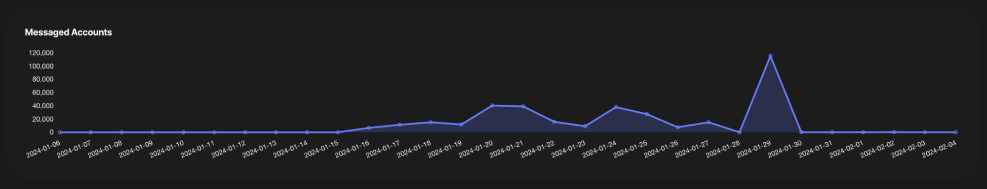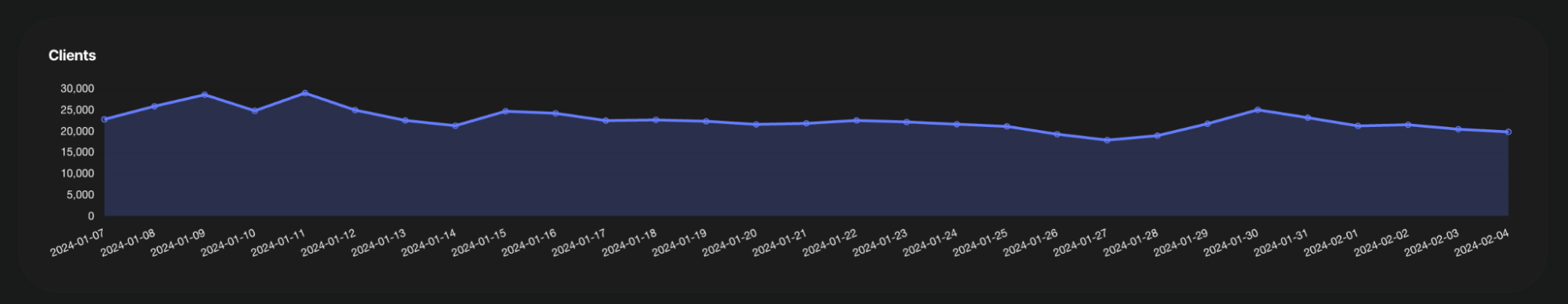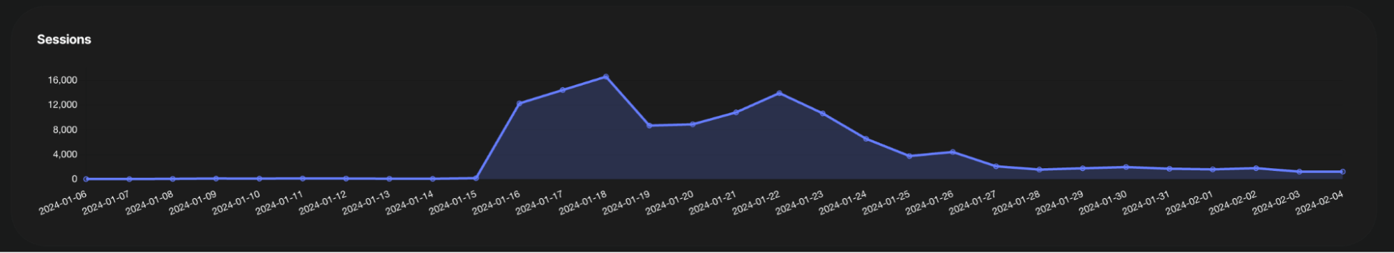 Shows the daily trend of sessions created when the user signs a message with their connected wallet.