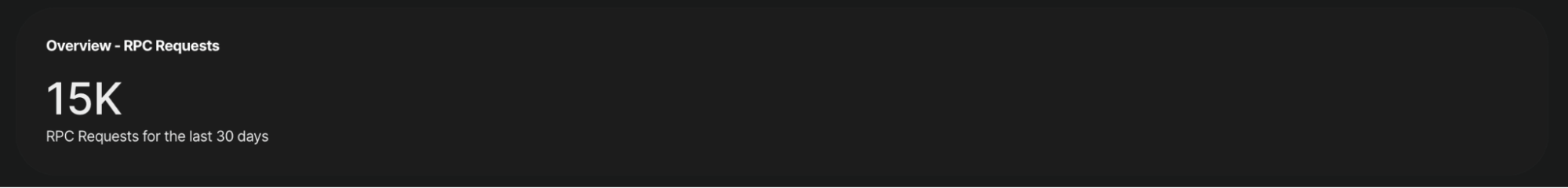 Represents the total count of remote procedure calls (RPC) made to the blockchain API for the last 30 days.