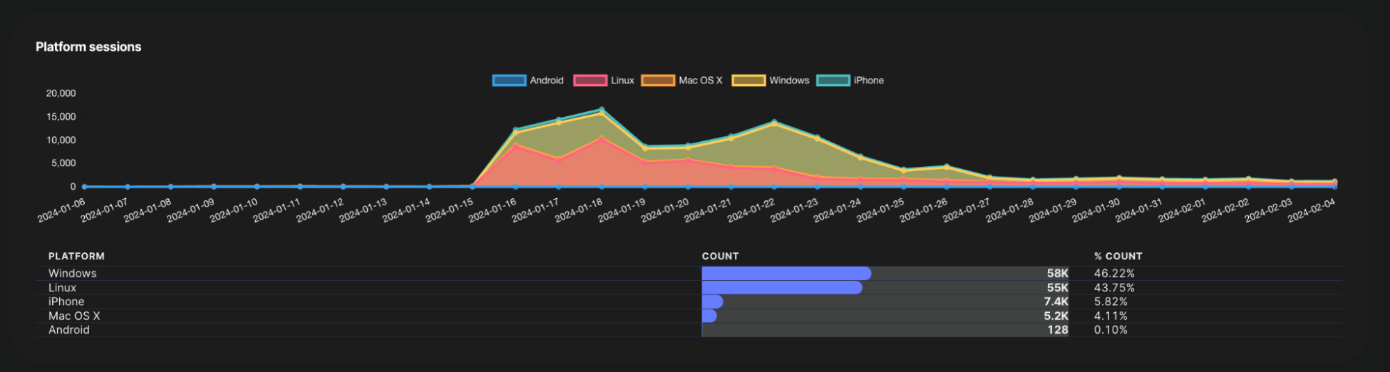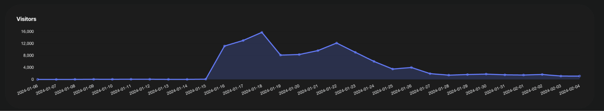 Shows the daily trend of unique visitors to your app’s AppKit.