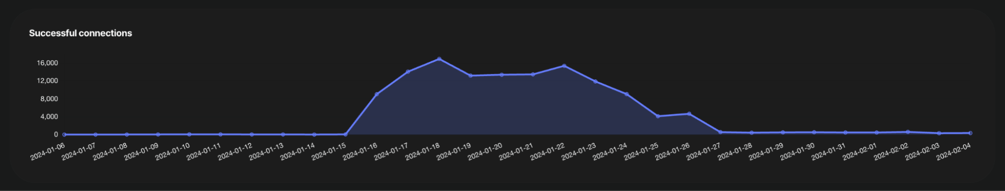 Indicates the total number of connections established from clients (device or browser if connecting on the web).